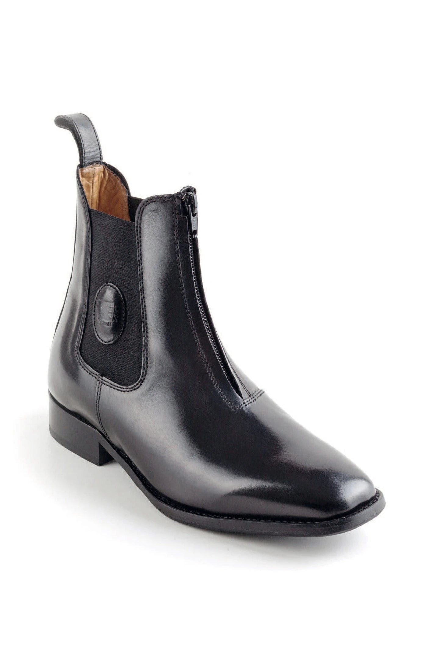 Short boots in calfskin leather, Black color with front zipper, side elastic, leather sole.